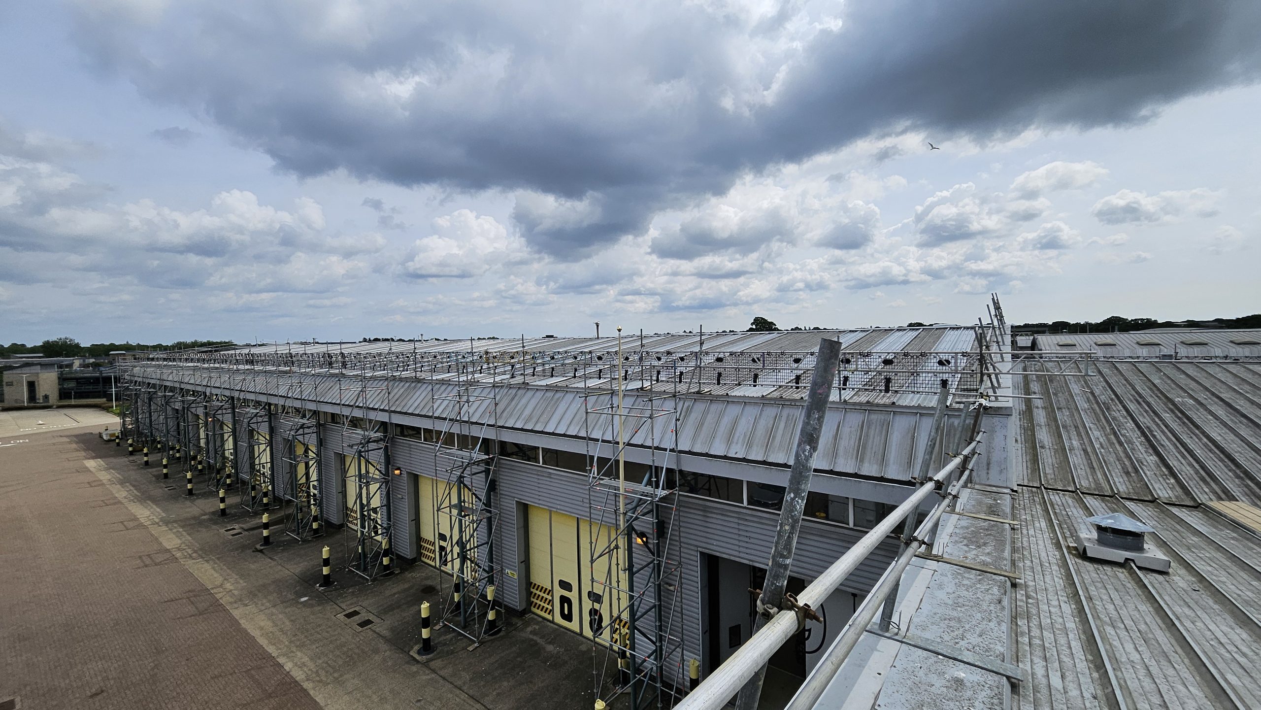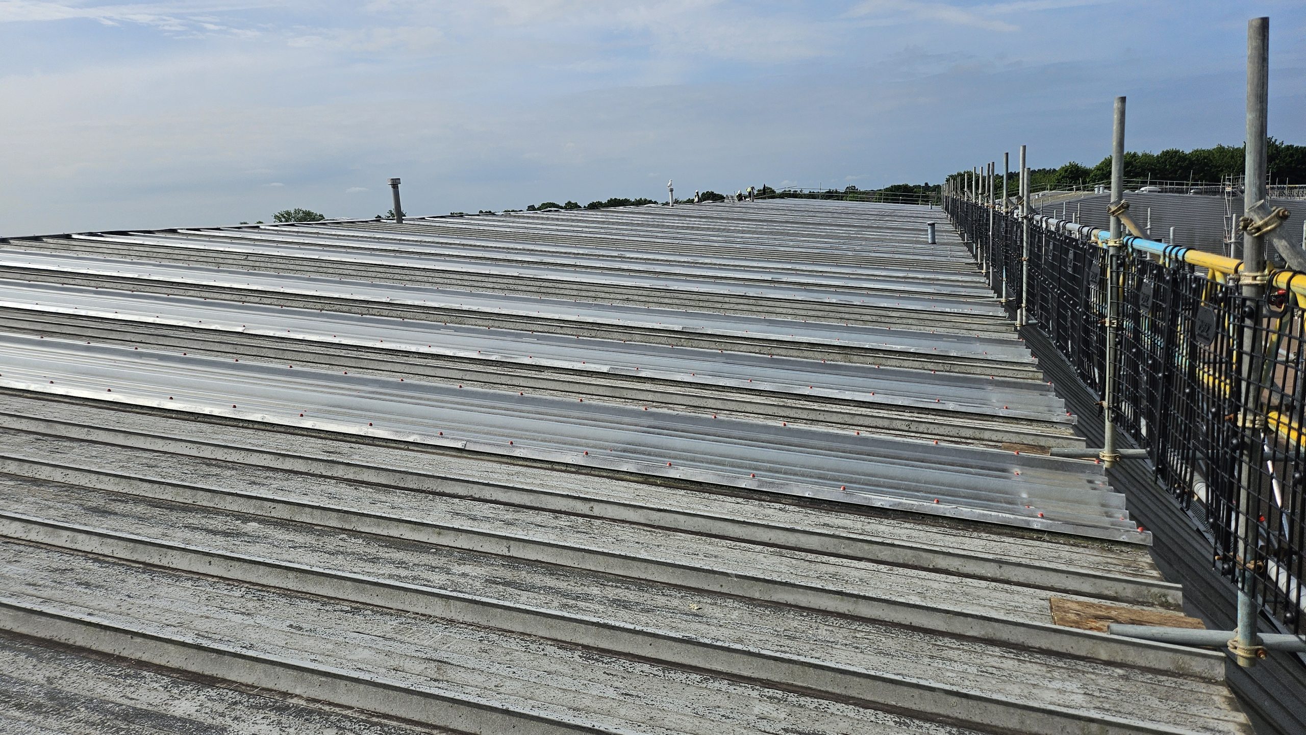 We were originally tasked with replacing the original 124 discoloured and damaged rooflights and replace all the existing barge boards. Due to the make up of the roof being a secret fix twin skin it was only viable to replace the top skin section of each rooflight. After discussions with the client it was deemed the best approach to remove the top skin and clean the bottom skin before installing a new rooflight top skin.